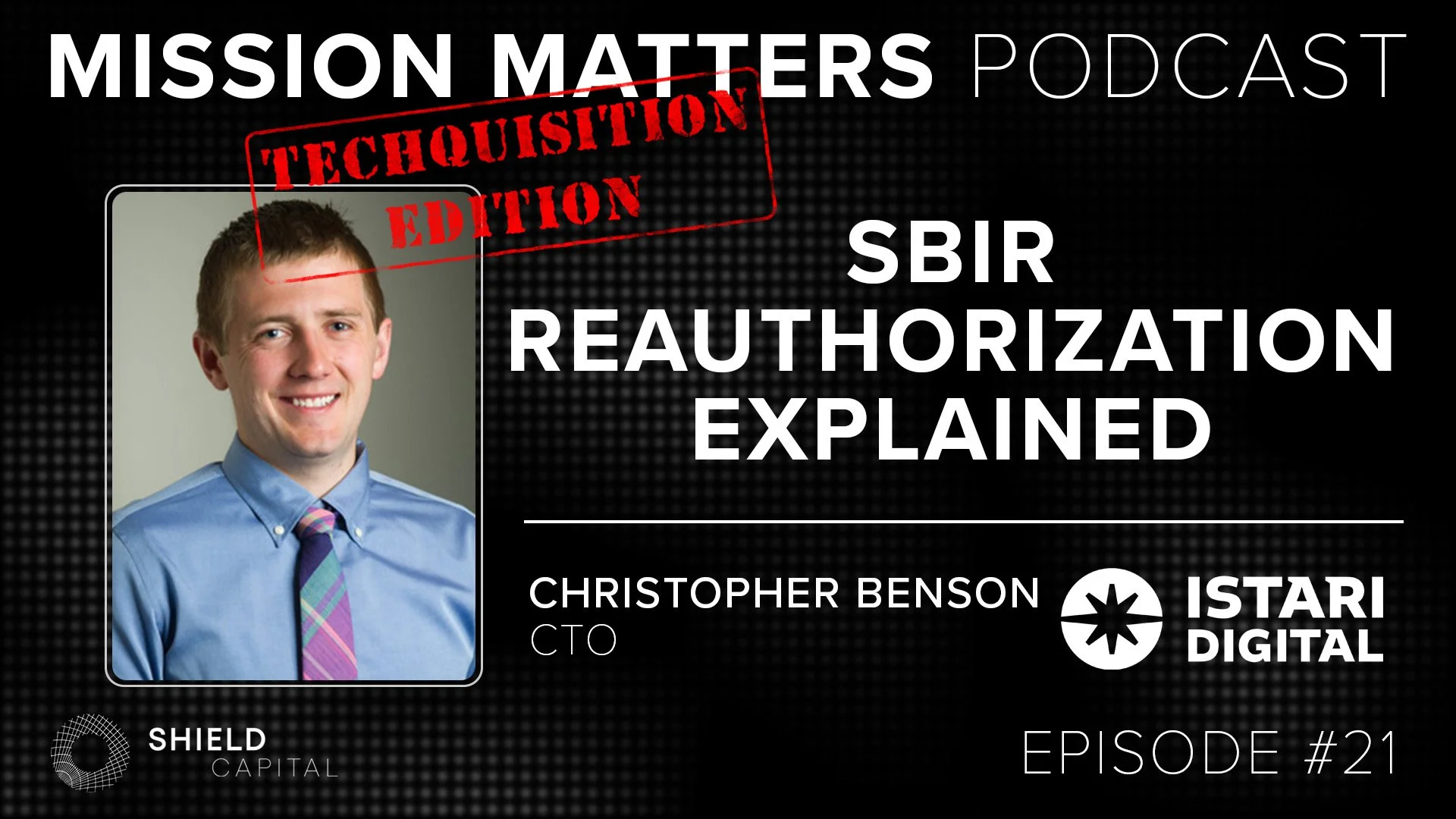 On this episode of the Techquisition Edition of the Mission Matters podcast, we’re breaking down something that really sits at the center of the defense innovation ecosystem — that is the reauthorization of the Small Business Innovation Research and Small Business Technology Transfer Program, better known as the SBIR/STTR program. Although, for the purposes of this podcast, we’re just going to truncate it down to SBIR, which is how it’s commonly referred to. Additionally, while SBIR is a government-wide program administered by the Small Business Administration and executed at every government agency, we are primarily going to focus on the Department of Defense, which we will just refer to as DoD. And to help us do that, we are joined by someone who has a front row seat to the evolution of the program — Chris Benson, the CTO of Istari Digital. Before joining Istari, Chris served as an Air Force acquisition pioneer and was one of the architects behind the modernization of SBIR during his time at AFWERX, including initiatives like creating the concept of open topic and the extremely popular TACFI/STRATFI program that many startups and investors today see as the best on-ramp into defense.